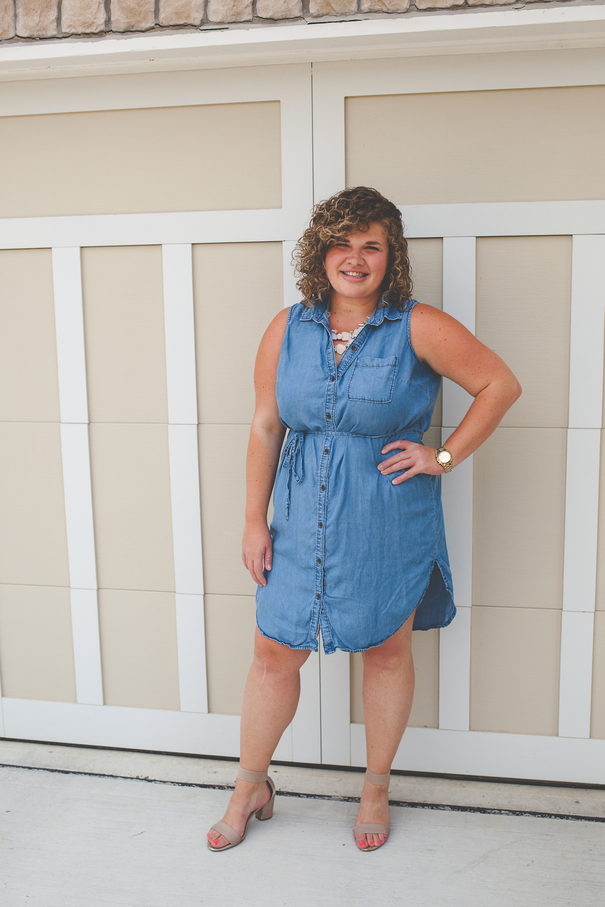 Dress can be worn two ways with the jean belt that comes with the dress, without for a shif relaxed style, or pair with another skinny belt that is a bold color such as a red or mint!
